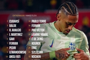 jiuyou-巴萨客战马竞大名单:莱万、亚马尔、拉菲尼亚在列,奥尔莫缺席